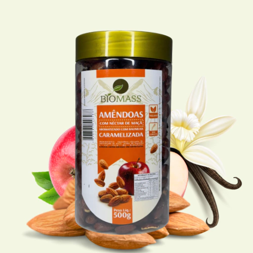 Encante-se com as Amêndoas Caramelizadas com Néctar de Maçã e Baunilha da Biomass, uma combinação sofisticada de sabores que eleva qualquer momento a um patamar gourmet.
